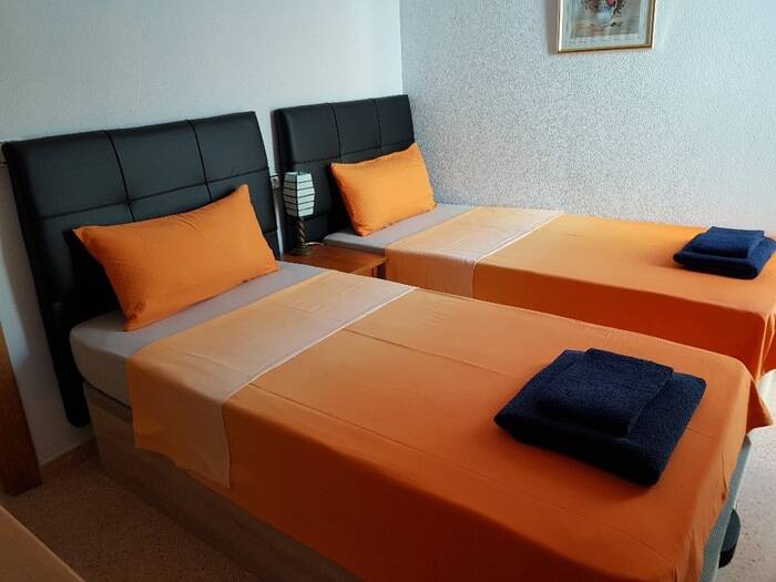 L'appartement se situe à 250 mètres de la plage (6 min. à pieds), au 5ème et dernier étage d'un agréable immeuble calme, dans le centre urbain de Torrevieja. Il est desservi comme suit : une grande chambre avec un lit double, une chambre avec deux lits de 90 x 200 cm, une salle de bain avec douche, une cuisine totalement équipée, un séjour, une salle à manger et une jolie terrasse. Un solarium commun est à disposition sur le toit de l'immeuble. Ce dernier est muni d'un ascenseur pour accéder à l'appartement.